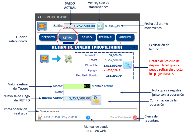 En esta opción se registran los RETIROS de dinero que el propietario realiza como parte de sus ganancias y/o comisiones